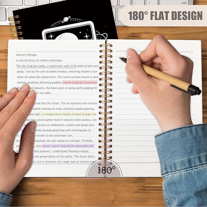 - Smooth Page Turn: Spiral binding allows the notebook to lay flat and turn pages easily, so you can use the entire writing area.