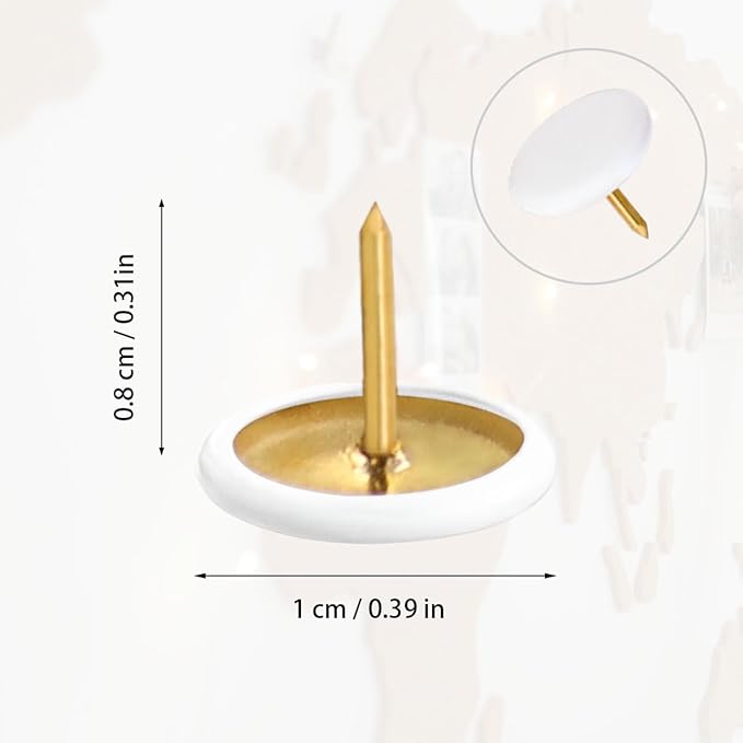 - Package Includes: You will get 300 pcs white plastic round head thumbtack, plastic round head thumbtacks total length is 3/ 8 inch / 10 mm, white round plastic head head diameter is 3/ 8 inch / 10 mm, steel pin is 5/ 16 inch / 8 mm. plastic roundness head thumbtack good for color coding or brightening up your bulletin board, cork boards, marking maps, notice boards