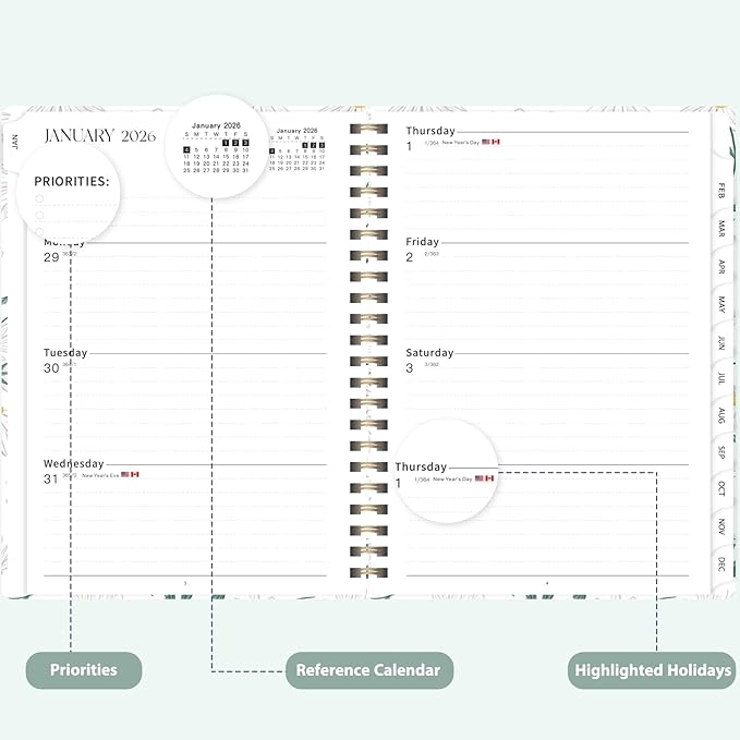 - [THOUGHTFUL DESIGN] – Boasting a secure elastic band, easy-to-use monthly tabs, and a handy double-sided pocket, the agenda 2026 also includes a unique motivational quote on each monthly spread to fuel your productivity.