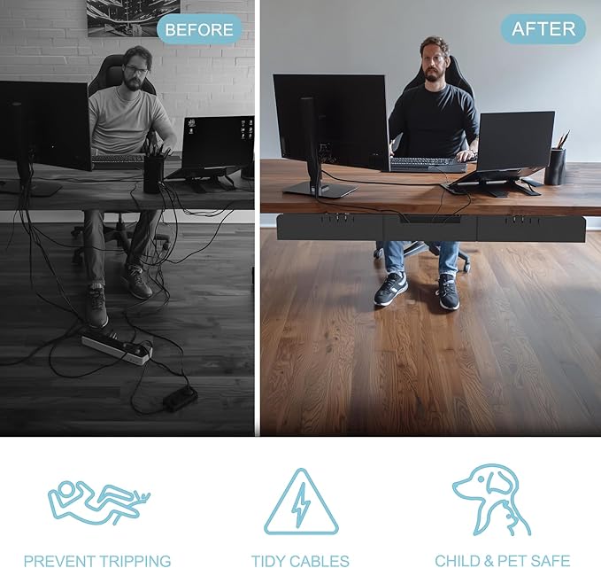 - KEEP YOUR DESK CLUTTER-FREE & ORGANIZED – Create a cleaner, safer workspace with this under desk cable management tray. Easily hide messy wires, cords, and strips — perfect for home offices, gaming setups, and workstations