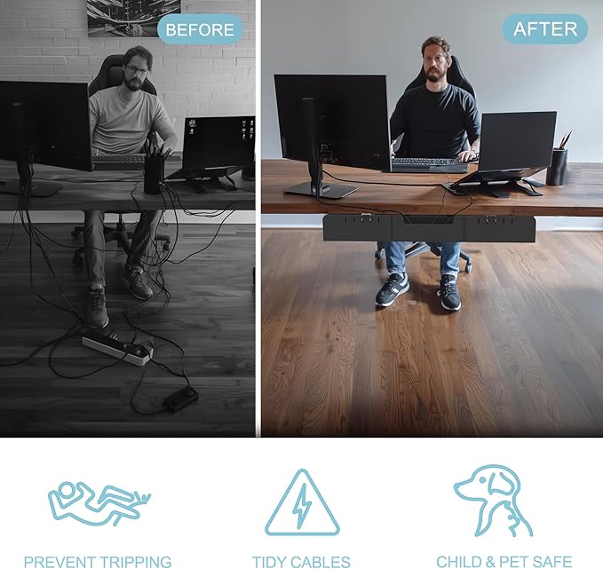 - KEEP YOUR DESK CLUTTER-FREE & ORGANIZED – Create a cleaner, safer workspace with this under desk cable management tray. Easily hide messy wires, cords, and strips — perfect for home offices, gaming setups, and workstations