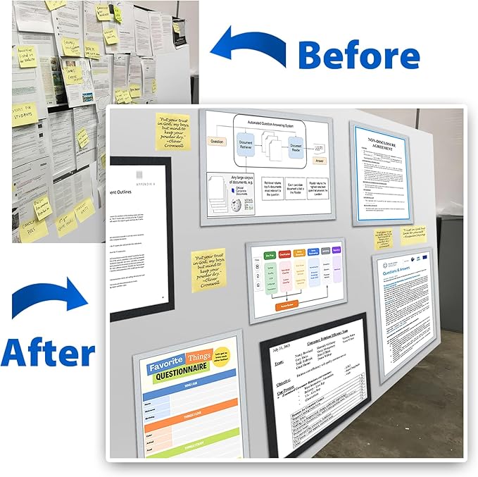 - ✔ Easy-to-Use Document Holder - Peel off the adhesive backing, stick on a sturdy surface, and insert or replace your documents and flyers effortlessly. A convenient magnetic paper holder and file organizer.