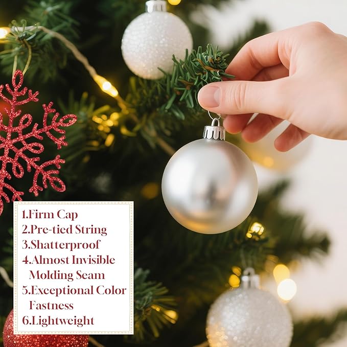 - 【Shatterproof & Durable】These red and white christmas ball ornaments are crafted from high-grade, durable shatterproof plastic and non-toxic flash powder. They are built to last, ensuring your holiday decorations remain beautiful for seasons to come.