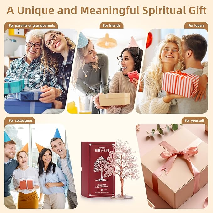 - A Meaningful Spiritual Gift: Both thoughtful and deeply symbolic, this Chakra Crystal Tree makes an exceptional gift for friends, family, or anyone who values healing energy and could use a boost of encouragement. It's also a perfect way to express heartfelt wishes for anniversaries, birthdays, Christmas, Mother's Day, Father's Day, retirement, housewarmings, or any special occasion. Place your crystal tree on a desk, in the living room, bedroom, bookshelf, or office as decor.