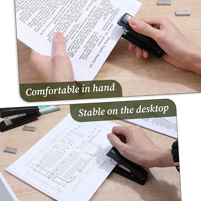 - 【Effortless Operation】Equipped with No-Jam technology, this stapler provides smooth and hassle-free stapling. The rotating top plate allows for temporary and permanent stapling