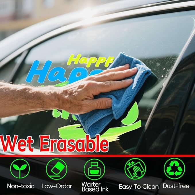 - High Quality Ink and Non-Toxic: Window markings are made with first-class water-based ink, dust-free and non-toxic formula, which is both environmentally friendly and safe to use at home. Suitable for adult coloring and painting canvases, DIY crafts projects.To help your marker pen last longer and perform well every time, we recommend covering it after each use to prevent it from drying out.