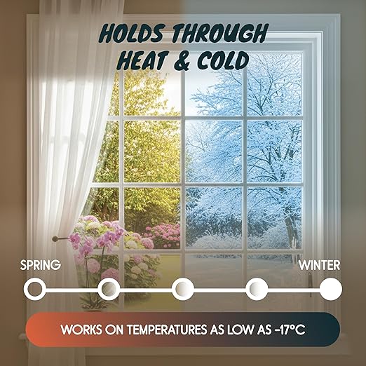 - All-Season Protection. Creates an airtight seal to block drafts and help reduce energy loss. This window weather seal tape reliably holds down to freezing 1.4°F and withstands indoor heat without curling or cracking.