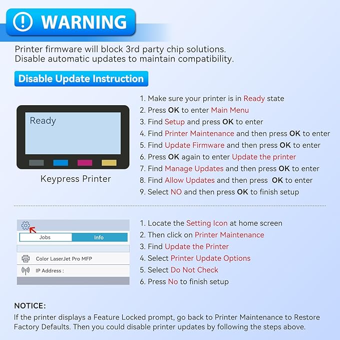 - Compatibility Alert: 148X toner cartridge is NOT Compatible for Suffix with Letter "e" such as: Pro MFP 4101fdwe/ 4101dwe/ 4101fdne, Pro 4001dwe/ 4001dne/ 4001ne. Please confirm your printer model before purchase