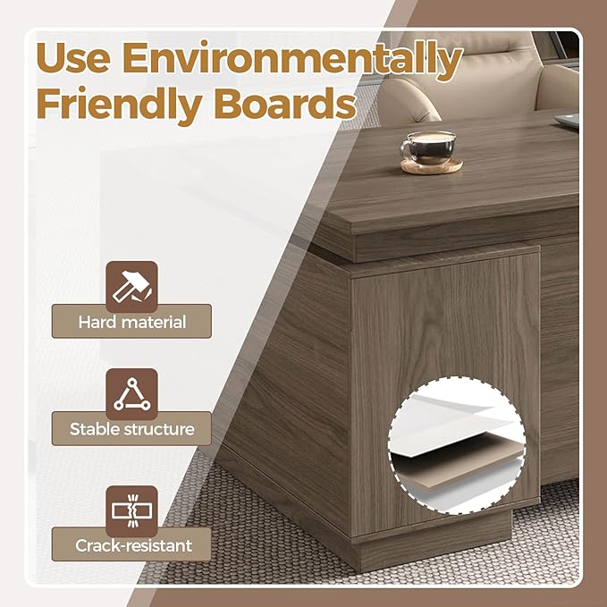 - Modern Design with Spacious Work Surface The Nuipesn executive desk features a sleek rectangular design with a generous desktop for monitors, laptops, and documents. Finished in elegant wood grain, it blends seamlessly into executive offices, home workspaces, or professional meeting rooms.