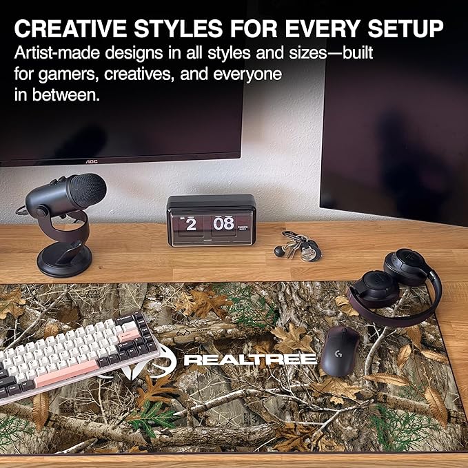 MPCO. Real Tree Large Gaming Desk Pad - 36" x 17" Duraglyde Fabric Edge Green – Without Logo Desk Mats - Non-Slip, Washable, Smooth Glide for Precision Gaming & Work