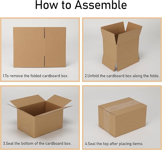 - Assemble Quickly: Unfold the 7x5x4 cardboard box along the folds, and seal the bottom and top with tape, it's easy to assemble shipping boxes in seconds.