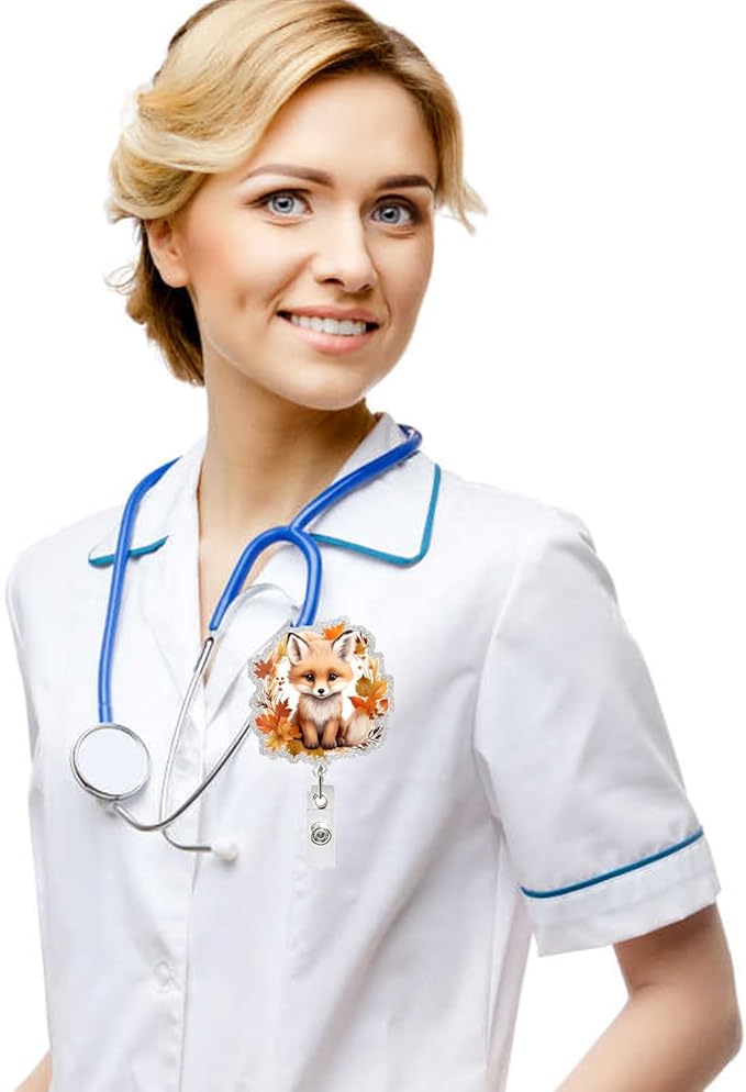 Cute Animal Badge Holders Fall Badge Holder with 360 Swivel Alligator Clip Acrylic Fox Badge Clip Designs Autumn Leaves Badge Reel ID Card Holders Name Card for Teacher Nurse Doctor Worker