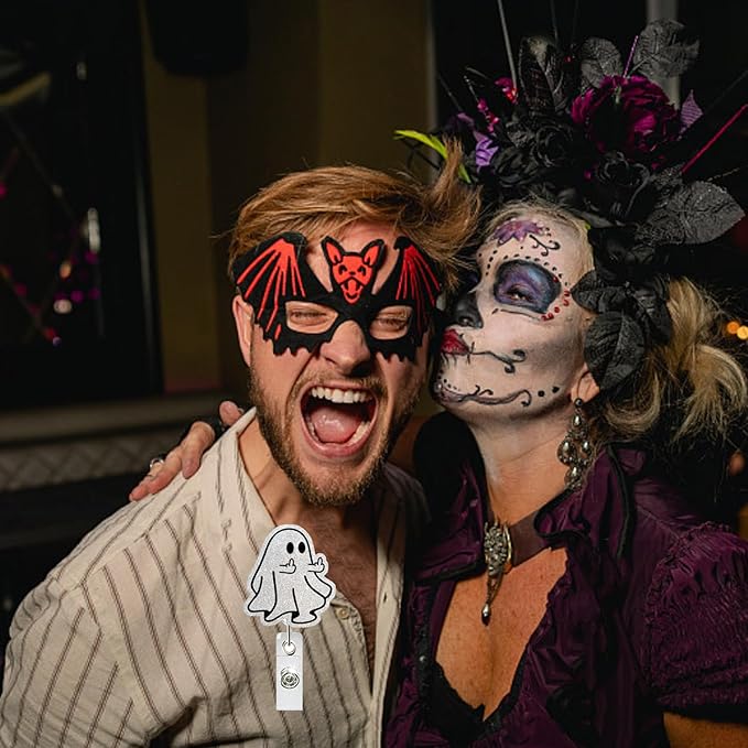 - Cute Halloween Design: The Halloween badge reel features an adorable middle finger ghos design, making it a perfect accessory for the festive season, enhancing your work attire with a touch of Halloween spirit
