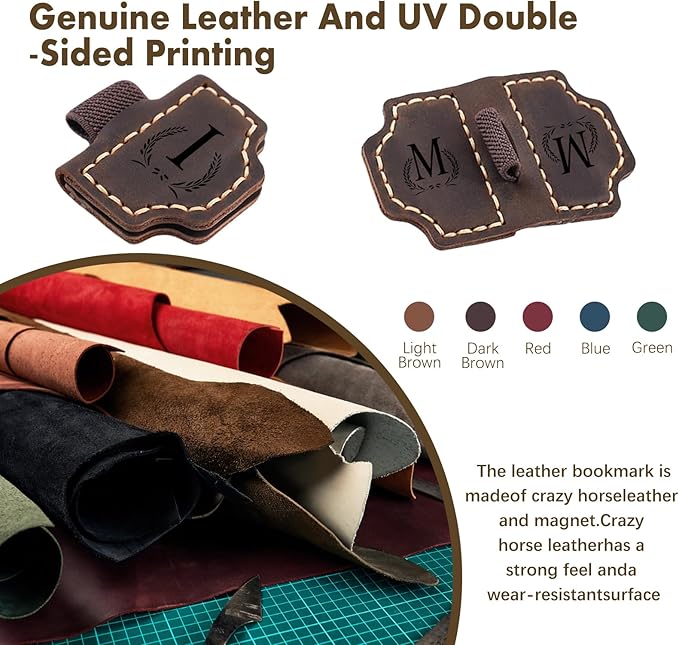 - Genuine Leather Bookmark: The bygone mark bookmark with pen holder is made of high-quality genuine leather, with smooth edges and exquisite stitching. The strong magnetic design firmly clamps the book, is wear-resistant and does not fade, and is durable.We have 5 different colors,(Blue, Red,Green,Dark Brown,Light Brown)This leather bookmark each color has 26 letters. perfect gift for book lovers, teachers, students, and readers of all ages(Note:There is ONLY one bookmark in the package)