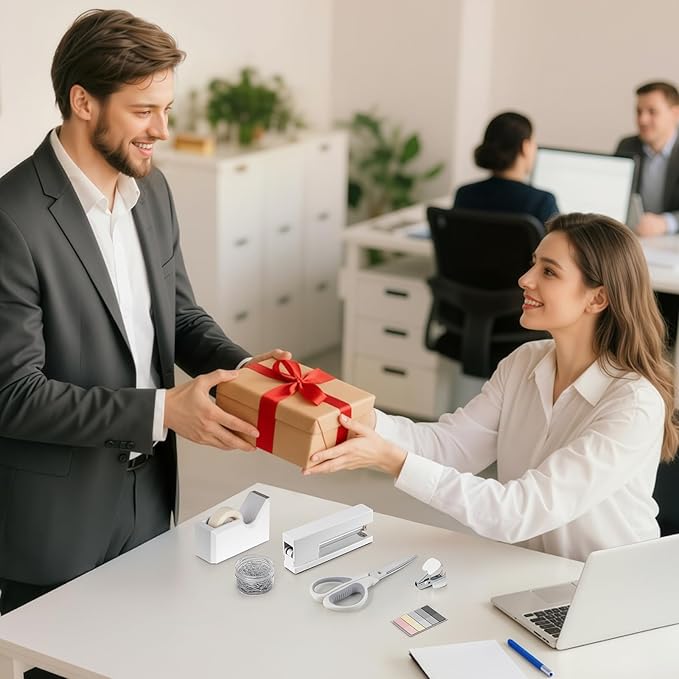 White Office Supplies, White Desk Office Supplies and Accessories, Stapler and Tape Dispenser Set for Women, Office Gift for Women, Office Lady, Coworkers, Office Clerks