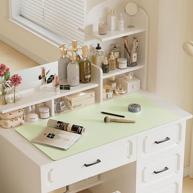 Aothia Faux Leather Desk Mat – Large Mouse Pad, Non-Slip PU Leather Blotter, Waterproof Writing Surface for Office and Home (Grass Green, 47.2" x 23.6")