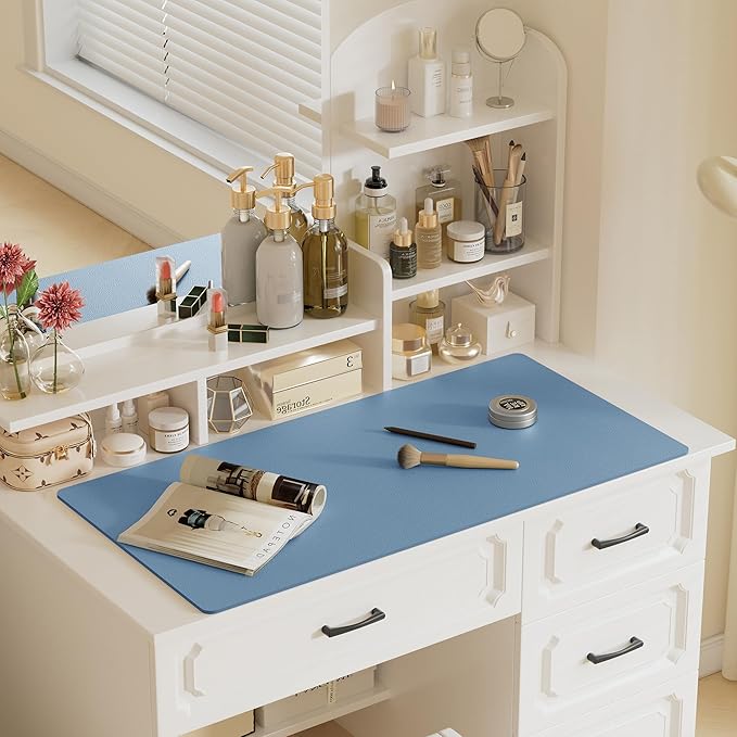 Aothia Faux Leather Desk Mat – Large Mouse Pad, Non-Slip PU Leather Blotter, Waterproof Writing Surface for Office and Home (Denim Blue, 47.2" x 23.6")