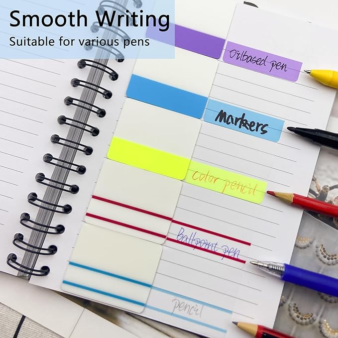 - 【Safety & Superior Quality Material】The reusable binder tabs are made of top quality BOPP material, which is repositionable, smooth writing waterproof and no odor; Self adhesive part is transparent. Helping you easily organize planners.