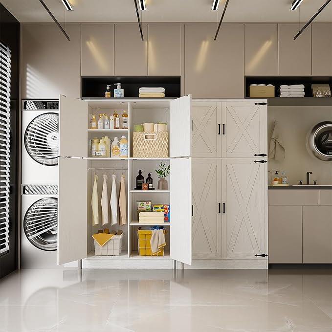 - 【Multiple Uses】The multifunctional cabinet is beautifully designed and very suitable for various environments. It can be used as a living room cabinet, bedroom wardrobe, kitchen Pantry Cabinet, dressing room storage cabinet, office filing cabinet, etc. And it is also suitable for garages, laundry rooms, basements, or any place that requires storage space.