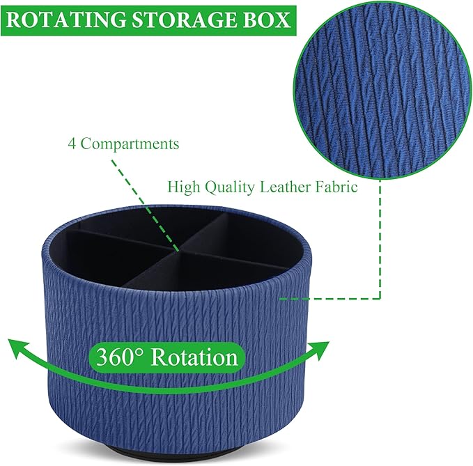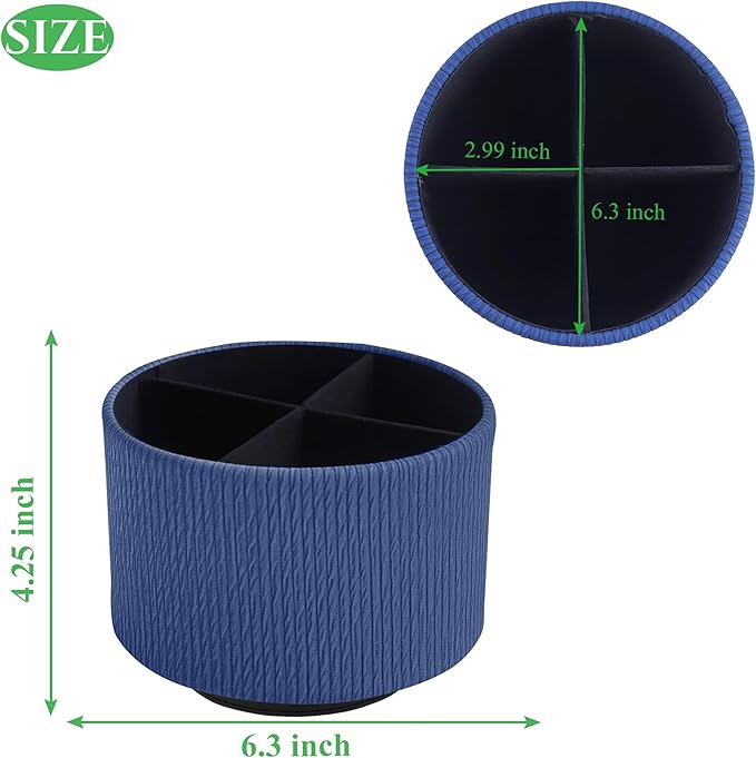 Hennaja Round Leather Art Supply Organizer,Remote Control Holder,360 Degree Spinning,Multi-Functional Pencil Holder,4 Compartments Desktop Stationary Organizer(1-Vertical Wood Blue)