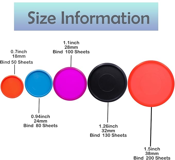 - 5 Sizes Options about Discbound Planner Discs Replacement:MINI 18mm(0.7 inch)for around 50sheets , S 24mm(1 inch)for around 80 Sheets,M 28mm(1.1 inch)for around 100Sheets ,L 32mm(1.26 inch)for around 150Sheets ,XL 38mm(1.5 inch)for around 200Sheets ,meet your various usage needs.