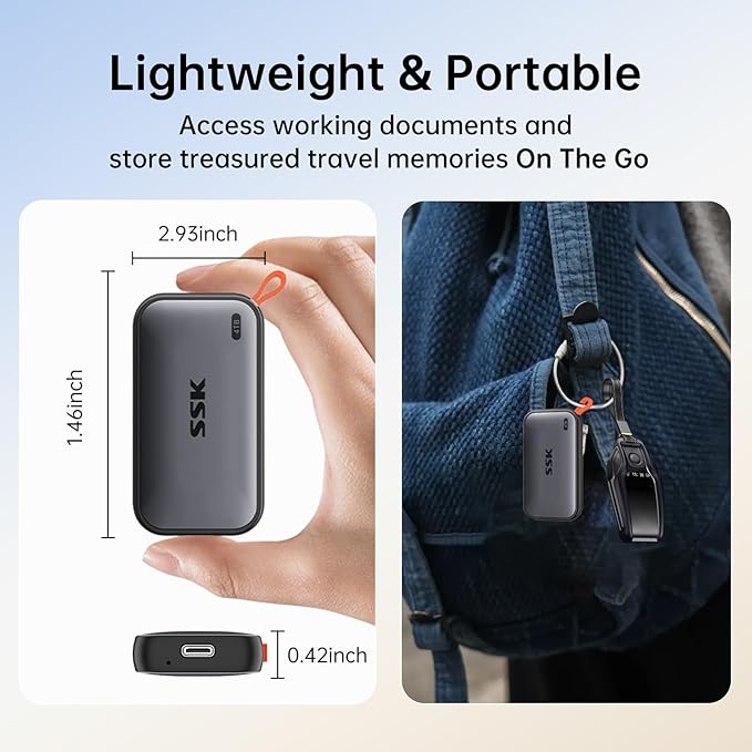- Cool, Lightweight & Portable: Crafted from 2mm thick aluminum alloy, this portable external hard drive dissipates heat to the external case efficiently. Weighing just 36.6g and measuring 2.6×1.5×0.5 inches, it slips easily into your pocket for powerful storage anywhere