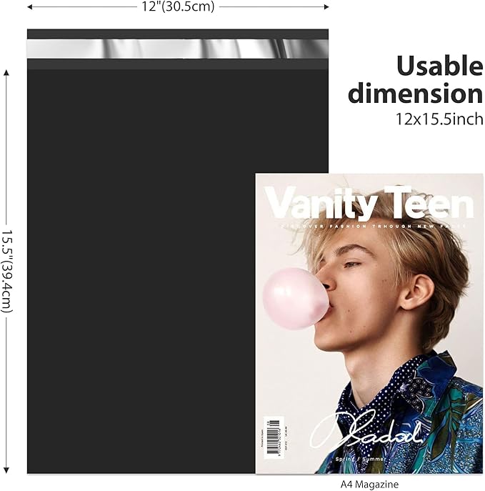 - 12x15.5 POLY MAILERS -The Fuxury 12x15.5" Poly Mailers are suitable for multiple products shipping like T-shirts,skirts,shirts,dresses,jeans,cosmetics,small item.Perfect for small business, boutiques,and online sellers.