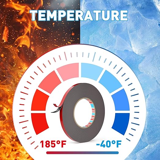 - Excellent Temperature & Weather Resistance: 6411 double-sided tape offers wide temperature tolerance (-104°F to 185°F) with waterproof and moisture-resistant properties. Maintains stable bonding strength after 1,000 hours at 85°C/85% humidity, ideal for outdoor signage, bathroom fixtures, and automotive trim
