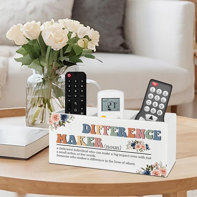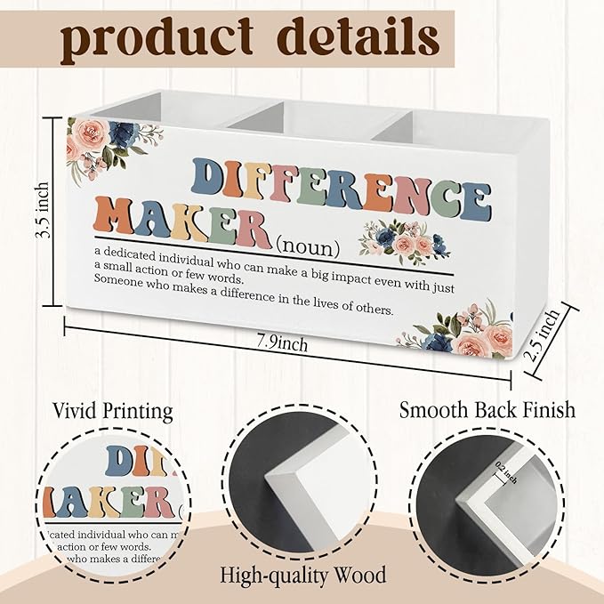Difference Maker Gift, Office Decor for Women, Pen Pencil Holder Organizer for Desk Accessories, Appreciation Thank You Gifts for Teachers Boss Leader Coworkers Wooden Box Sign