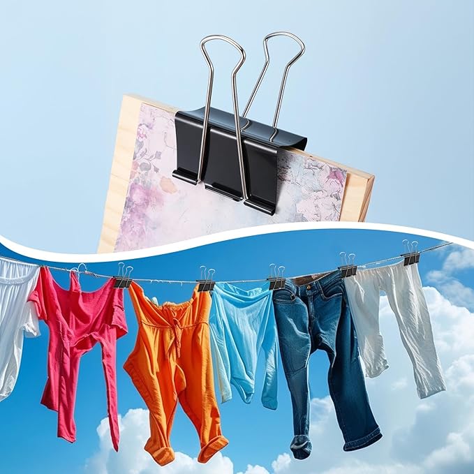 - 【Reinforced Material】 Made of tempered steel wire, these jumbo binder clips resist bending or spring fatigue. Ensuring reusable functionality for daily office tasks