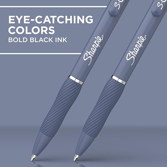 Sharpie S-Gel, Gel Pens, Medium Point (0.7mm), Assorted Fashion Barrels, Black Ink, 12 Count - Office, Teacher, School Supplies