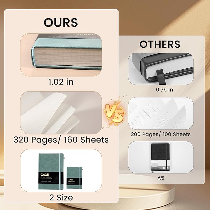- WATERPROOF HARD COVER: Graph notebook have a comfortable touch. Durable and waterproof hardcover grid journal protects the inside of the pages better than a soft cover and provides a comfortable writing surface