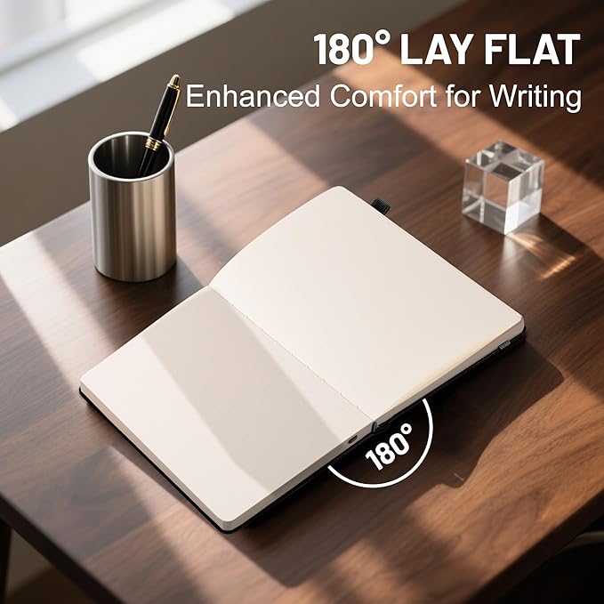 - 180° LAY FLAT DESIGN- The dotted journal is securely bound and sits perfectly 180 degrees, allowing seamless use of both pages. It is easy to write for both right and left-handed users. Perfect dot grid notebook for bullet quick journaling, note taking or planning