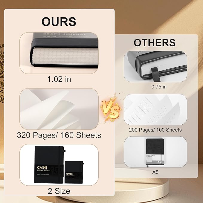 - 320 PAGES PREMIUM PAPER- Crafted from 100 gsm thick acid-free paper, it perfectly captures your thoughts while effectively preventing ink bleed-through. The dot matrix design offers subtle visual cues that maintain page layout and alignment while preserving near-blank-canvas creative freedom