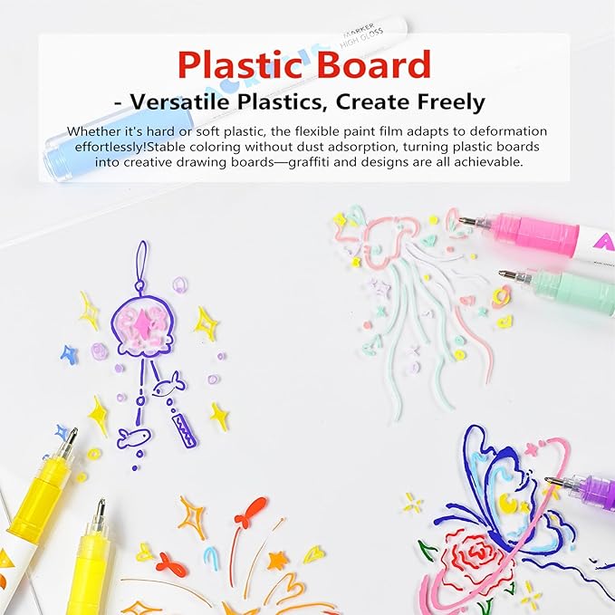 - 3. Large Ink Capacity & Multi-Purpose Application - With large ink storage, these acrylic gel pens can be used for long periods without frequent replacement. They are versatile art supplies suitable for rock painting, glass decoration, wood crafts, DIY projects, scrapbooking and more. Ideal as colouring pens for teenagers, they also meet the needs of professional artists for various creative scenarios.