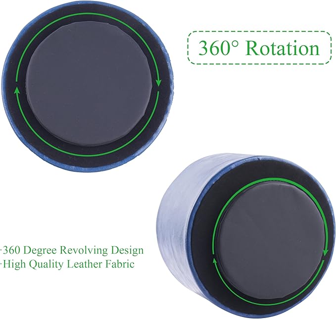 Hennaja Round Leather Art Supply Organizer,Remote Control Holder,360 Degree Spinning,Multi-Functional Pencil Holder,4 Compartments Desktop Stationary Organizer(1-Oil Blue2)