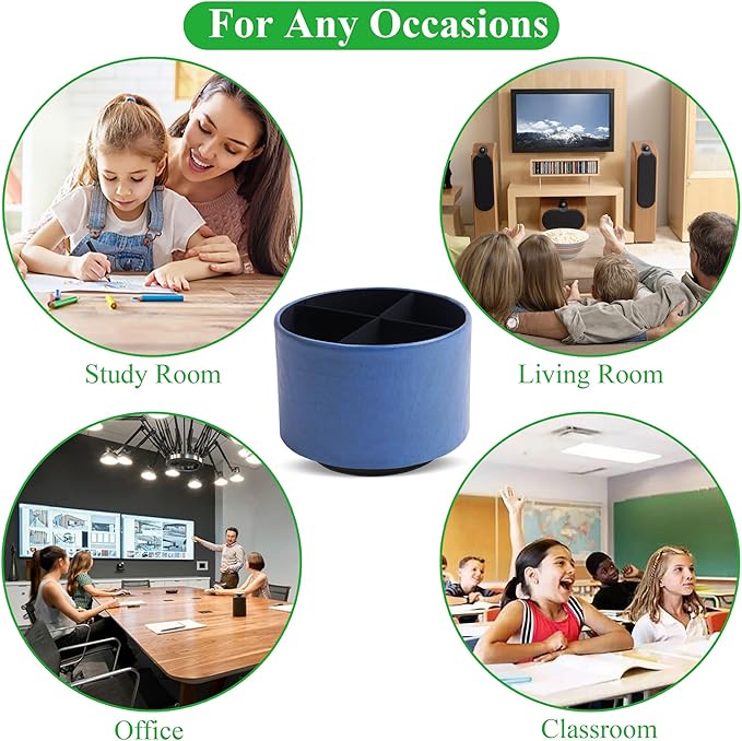 - ✎360° Revolving Design: You can freely rotate the pen holder steadily left and right,unique spinning base design allows easy access to items from any directions.The non-slip pads on the bottom keep it stay in place when rotating.