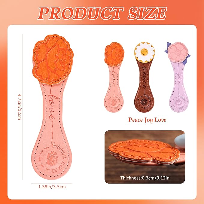 3 PCS Fruit of Spirit Magnetic Leather Bookmarks, Floral Patterns (Love Joy Peace) of Galatians, Bible-Inspired Page Markers, Double-Sided Clips, Gift for Book Lovers, Students, Book Accessories