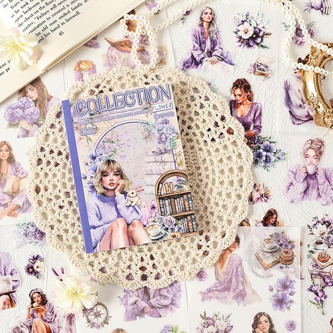 - Cloud Flower Gathering stickers book: Enjoy a variety of uniquely purple girl designed PET and washi stickers book. Each stickers are meticulously illustrated to bring a touch of magic and wonder to any space, whether it's a child's bedroom, a study area, or a creative studio