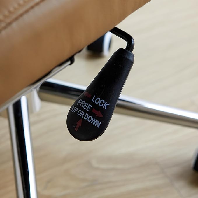 Livinia Modern Executive Office Chair with Patterned Back Design, Chrome & Leather Swivel Chair with High Back, Adjustable Height, Removable Armrests, and Wheels for Home Office (Brown(Chrome))