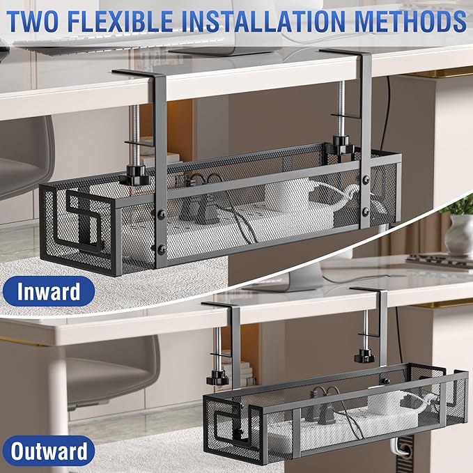 - 【Easy Installation & Desk Protection】 Set up the cable management tray in under 3 minutes with no drilling required. It includes anti-scratch rubber pads to protect your desk surface, unlike other organizers that may damage your furniture.