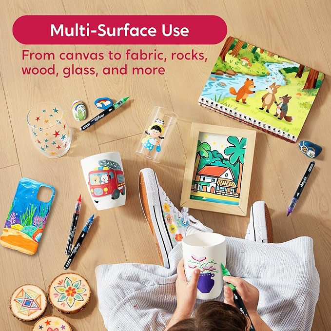 SYNCFUN 24 PCS Acrylic Paint Markers, Brush Tip Markers, Waterproof Paint Coloring Pens for Drawing, Art Supplies & Kids DIY Craft, Fabric, Canvas, Rock Painting, Wood, Glass, Ceramic, Metal