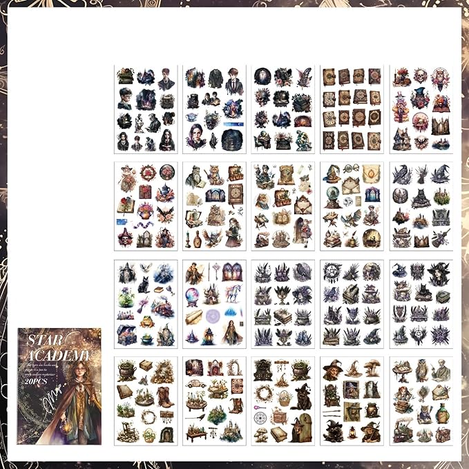 - Star Academy stickers book: Enjoy a variety of uniquely magic books designed PET and washi stickers book. Each stickers are meticulously illustrated to bring a touch of magic and wonder to any space, whether it's a child's bedroom, a study area, or a creative studio. Large book size is 7.1in x 10.5in