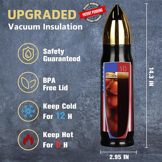 - Portable 17oz Bullet Water Bottle: Our bullet cup fits most car cup holders. You can enjoy drinks with the gun gifts for men unique at many occasions such as home, office, fishing, hunting, beach, camping, picnic, hiking, etc. Also it is a cool home decor