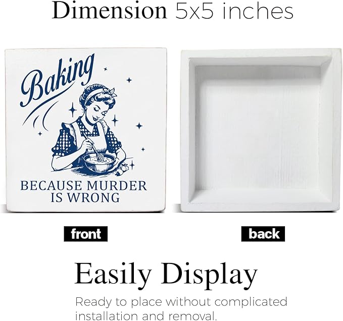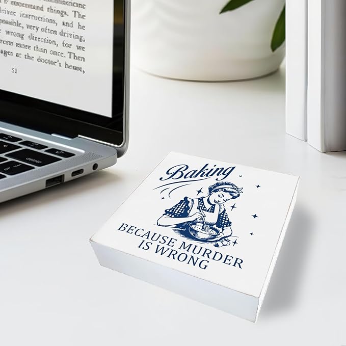 Baking Gifts for Women Bakers, Baking Because Murder is Wrong Humorous Wooden Sign Home Kitchen Decor