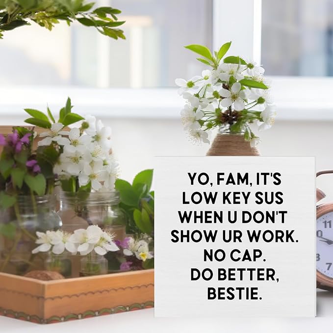 Math Science Teacher Gifts from Student, It's Lowkey Sus When U Don't Show Your Work Wood Sign, Funny Teacher Signs Decor for Classroom