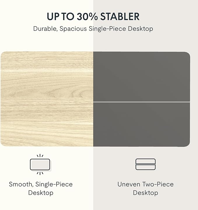- AMPLE WHOLE-PIECE DESKTOP: With its whole-piece 1” eco-friendly desktop, this standing desk provides plenty of room for your computer setup, documents, and accessories, creating a well-organized and productive work environment. Due to hand measurements, desktop dimensions may vary slightly by 0 to 3”.