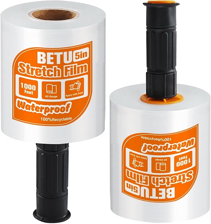 - 【MOVING & STORAGE】This Stretch Wrap has 2 rolls stretch film and 2 plastic handles. The plastic film are 5 inches wide x 1000 feet length and it features thick 60 gauge wraps. Perfect for both industrial and personal use. Whether you pack cargo pallets for transportation, wrap furniture, boxes, suitcases, christmas tree, securing oddly sharp-edged items. This clear stretch packing film will organize, bundles, protector and holds everything in place.