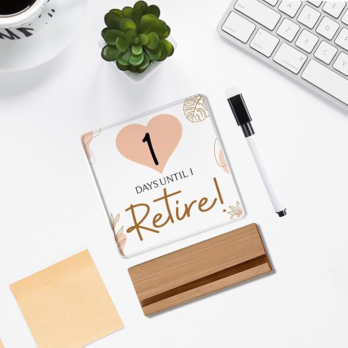 Retirement Countdown Sign,Retirement Plaque Funny Novelty Gift Wipeable for Grandma Grandpa Acrylic Decor Sign with Wood Stand 4 X 4 Inch