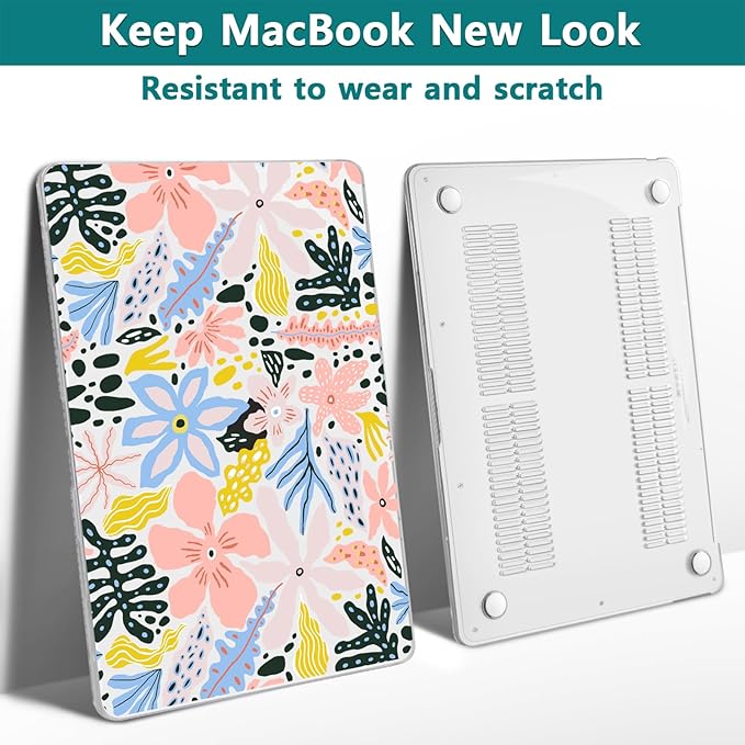 Teryeefi for MacBook Pro Case 13 inch 2022 2021 2020-2016 A2338 M2/M1 A2251 A2289 A2159 A1989 A1706, Clear Laptop Hard Shell with Keyboard Cover & Trackpad Film & Type C Adapter,Abstract Flowers W124